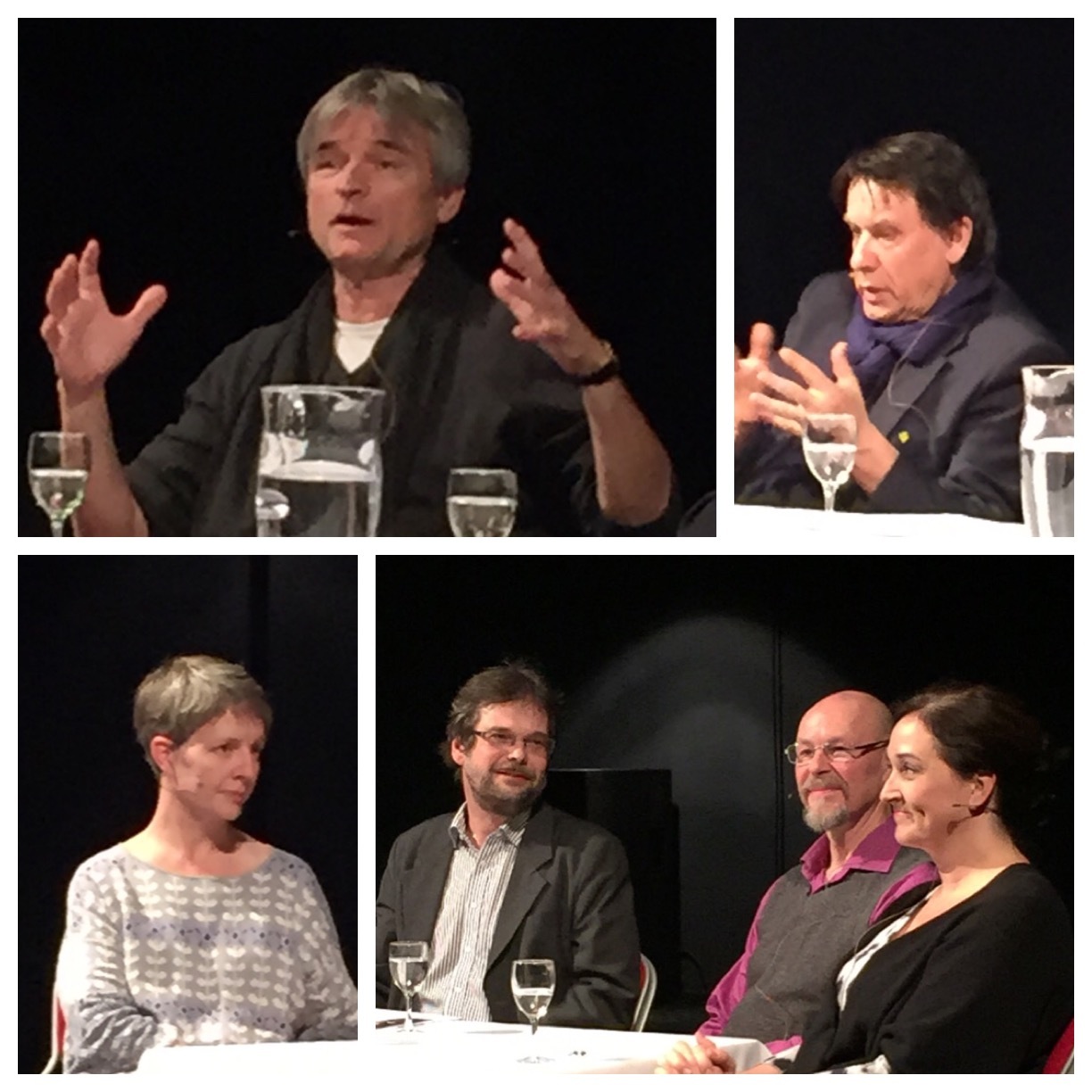 Samtal på GöteborgsOperans Lilla scen 7 april 2015. Regissören David Radok (övre vänster), psykologen Per Magnus Johansson (övre höger), musikaliskt instuderingsansvarig och GO Vänners stipendiat 2014 Karin Holm (nedre vänster). Samtalsledare var dramaturgen Göran Gademan flankerad av sångarna Anders Lorentzson och Katarina Karnéus (nedre till höger). Foton: Bitte Holmquist.