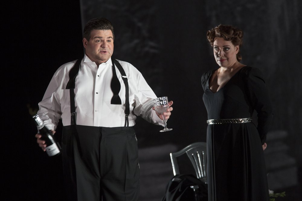 Michael Weinius, som Alexander Sebastian, och Katarina Karnéus, som hans mor Madame Sebastian, i en nyckelscen. Foto av Mats Bäcker.